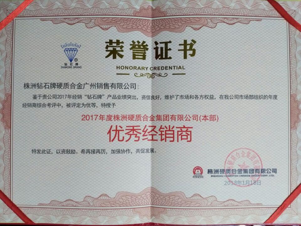 ■ 服务承诺: 广州公司荣获2017年度集团公司 钻石优秀经销商荣誉证书 广州公司获得2011年省机床刃具 商会《诚信企业》称号!